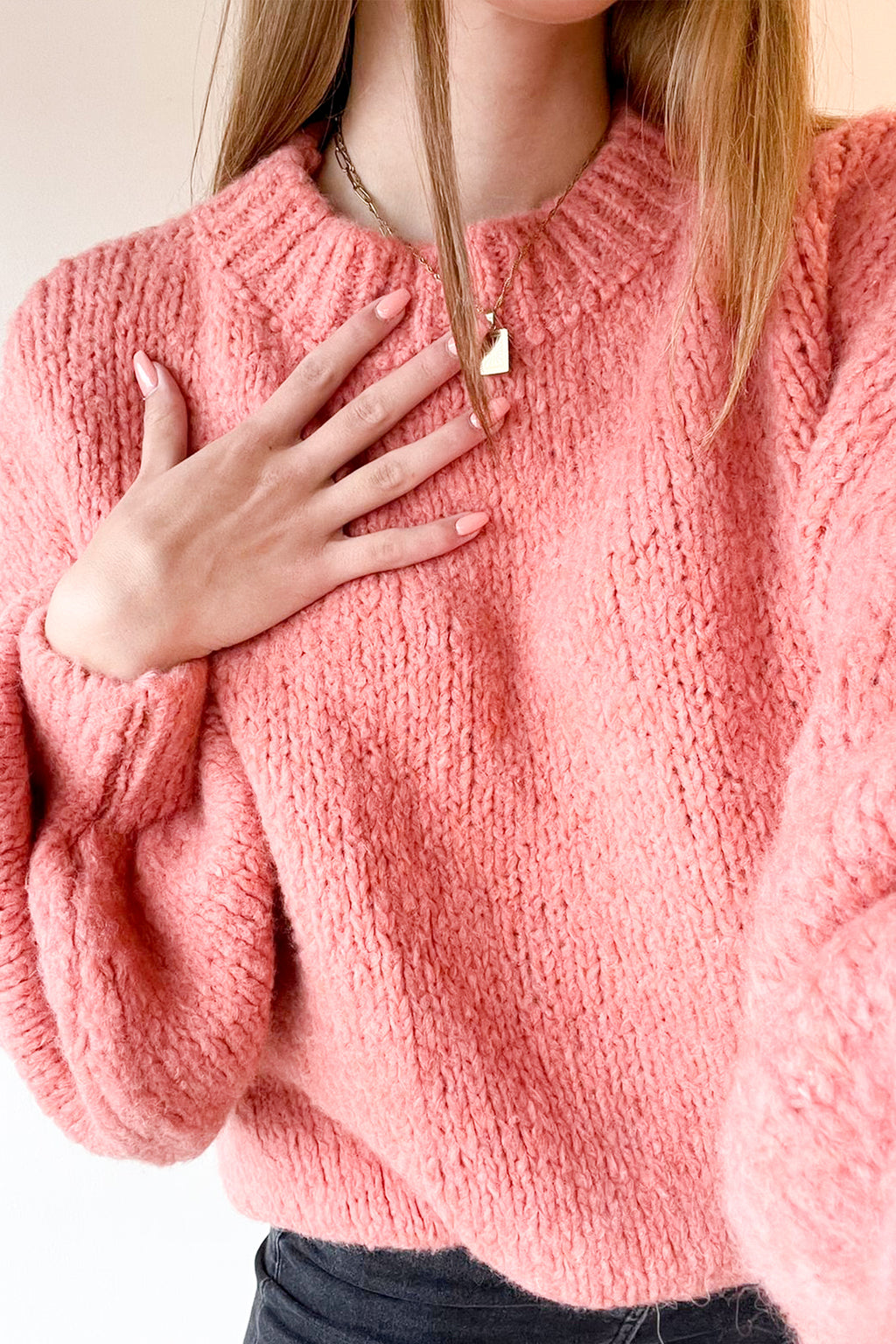Short Oversized Knit Sweater Coral